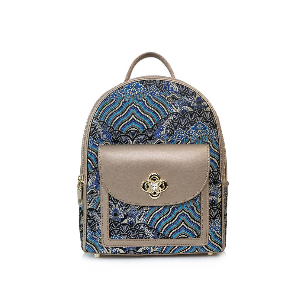 Chinese-style Cloud Brocade Backpack - Luxurious Pattern Student Travel Bag for Women