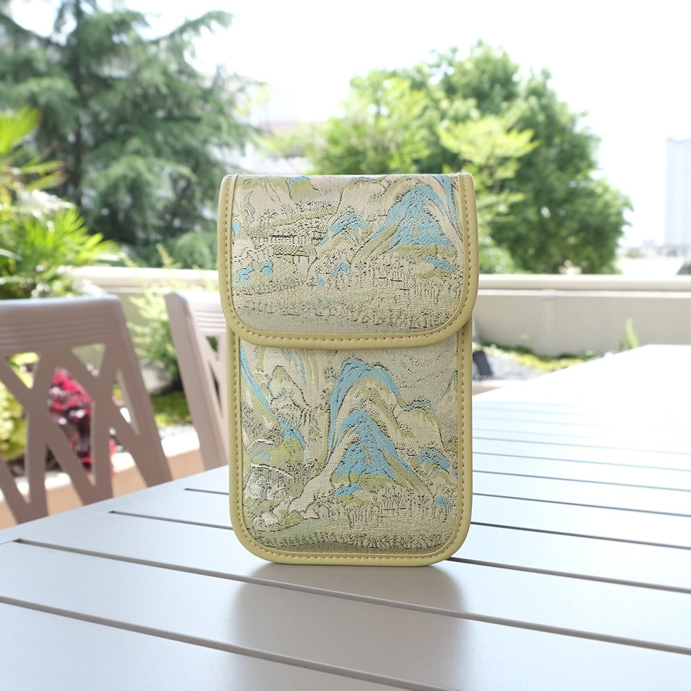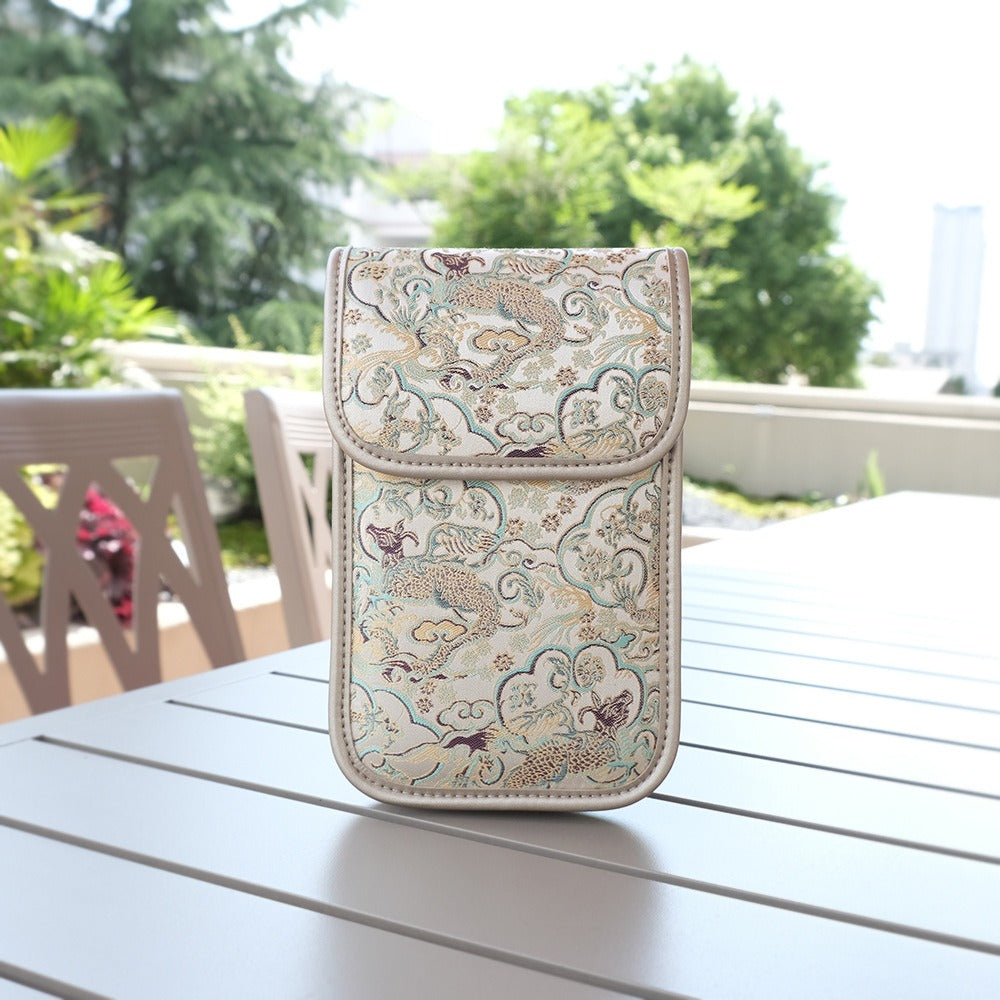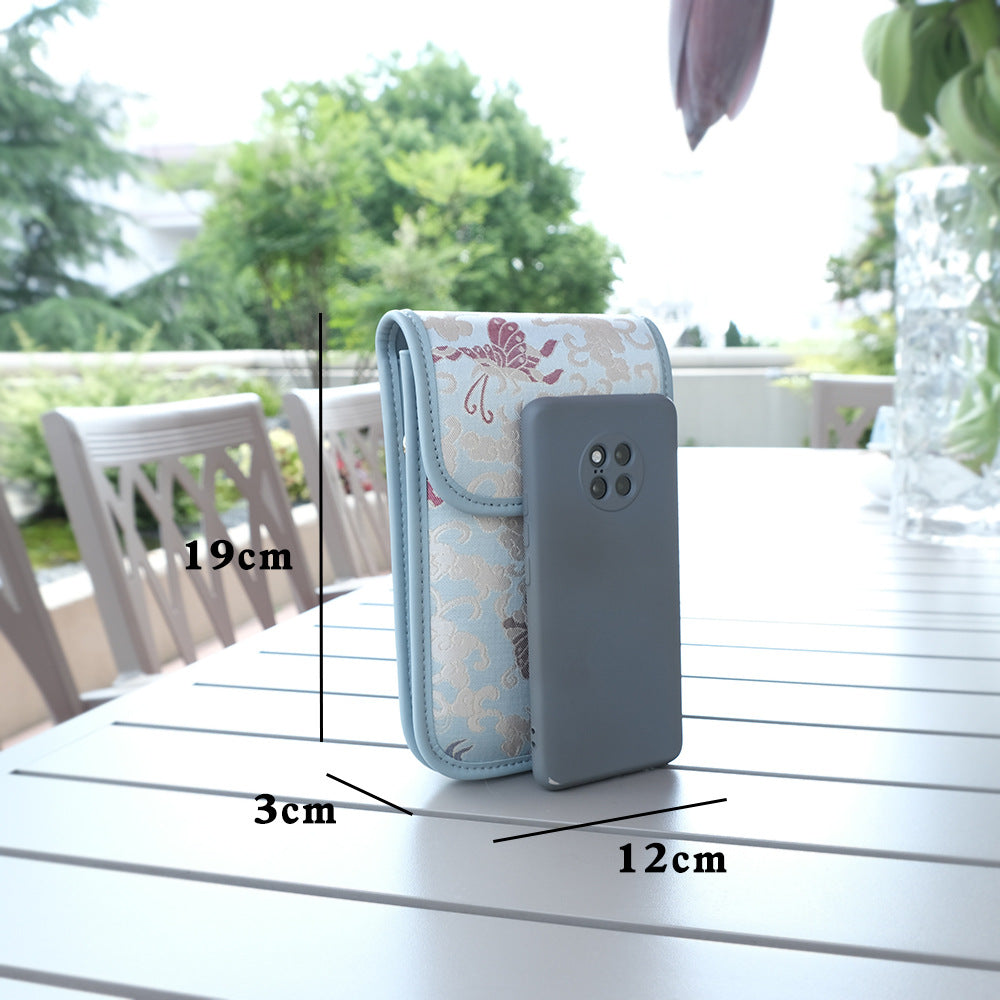 Tailored for phone size; wear-resistant glossy Song Brocade; unique Chinese patterns, compact & space-saving.